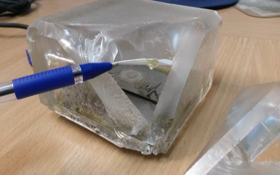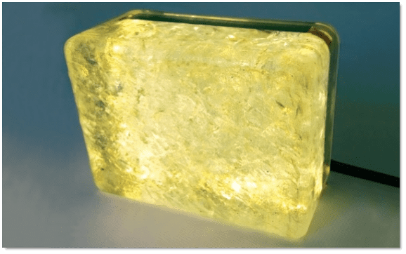 ينتشر الضوء الموجود في المصابيح من المنتصف بالتساوي على كامل حجم الحجر مع انكسار جميل، بينما لا تظهر أي نقاط من الثنائيات تتيح لنا الخصائص التكنولوجية لمصابيح LED فرصًا واسعة لإنتاج عناصر ذات إضاءة متعددة الألوان والعديد من أوضاع السطوع.
